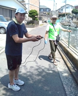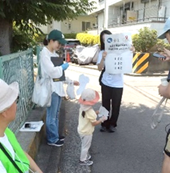 5チームに分かれて斎南地域の雨水桝にミディ(蚊の成虫化を防ぐ)を投入しました