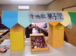 学生さん手作りの”駄菓子屋さん” で表彰式!! 駄菓子屋さんの沢山のお菓子を前に、子供たちの目はまるで宝石のように輝いています(笑)!