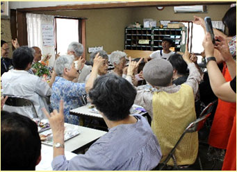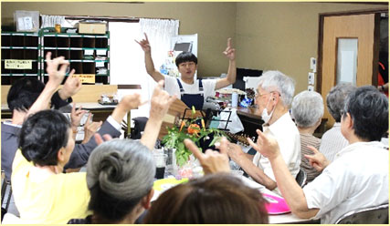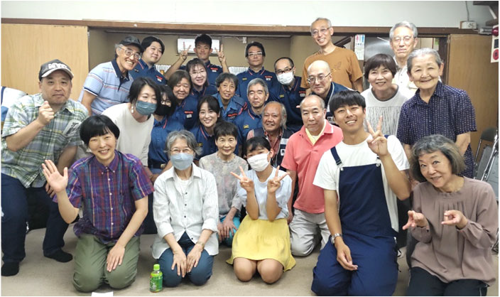 7月は町内会のアイドル(!?) シンガーソングライター・大谷さんと一緒に昭和歌謡や最近の歌で大盛り上がり!懐かしの名曲にみんなでノリノリでした。
