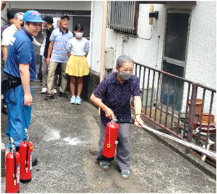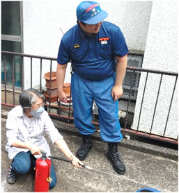 消防団の皆さんに消火器の使い方を教わりました。
