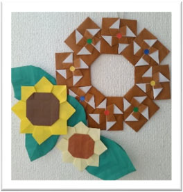 7月の作品より『花火』『風車たとう&ヒマワリ』です! 見ているだけで心がパッと明るくなりますね